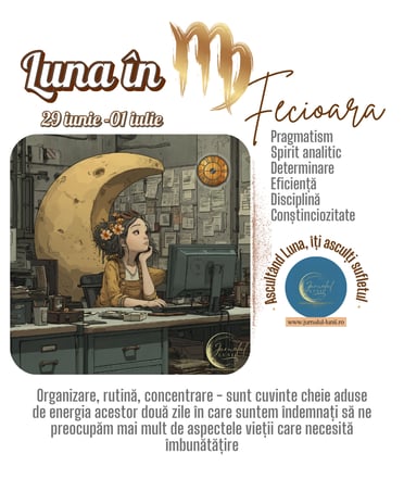 Fecioara aduce conștientizarea existentei celuilalt, pentru prima dată de când Luna a început periplul prin cercul zodiacal ca expresie a căii evolutive a omului. În consecință, fondul sufletesc și trăirile noastre sunt infuzate de respect și smerenie în față măreției existenței, trezind la viață importanța asumării rolului personal pe care îl avem fiecare în orânduirea lucrurilor. Fie la nivel personal, fie la nivel global. Fie el mai puțin însemnat, fie el crucial.