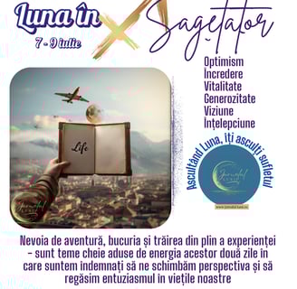 Într-o lume atât de ancorată în latura practică și materială a vieții, în griji, temeri sau supărări, prea des uităm să ne bucurăm de miracolul existenței și de posibilitățile infinite pe care ni le oferă ea. Oriunde întorci privirea, minunățiile așteaptă să le descoperim și să ne umple sufletele de entuziasm și fericire, începând de la simplul fapt de a avea șansa să ne trezim în fiecare zi dimineața. Și aici intervine semnul Săgetătorului, care, după durerea și renașterea Scorpionului, are viziunea necesară să acceseze înțelepciunea străbună care ne învață să prețuim fiecare clipă a existenței.